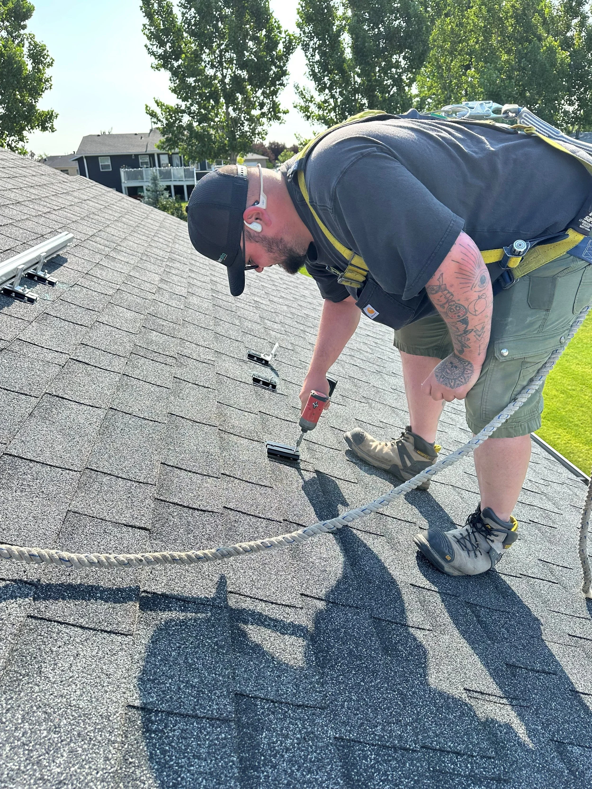 With the L-feet in place, we attach the rails that will support your solar panels. At this stage, we also install Critter Guard, which are mesh barriers that help prevent birds and small animals from nesting under your panels and damaging the wiring.